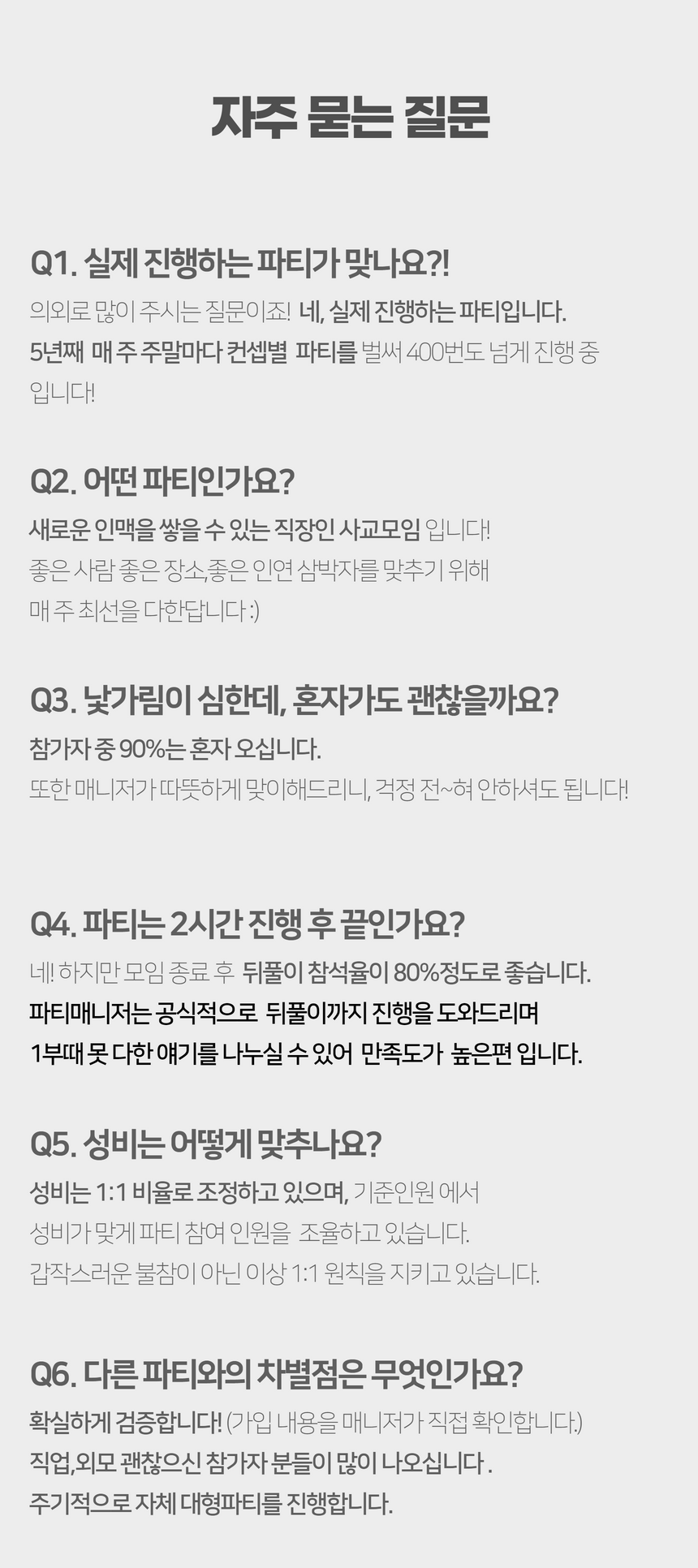· 파티 하루 전 신청마감 후 최종 문자 안내 해드립니다.
